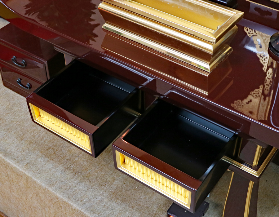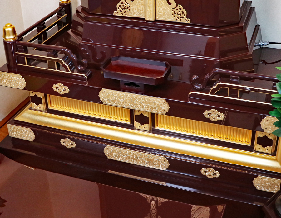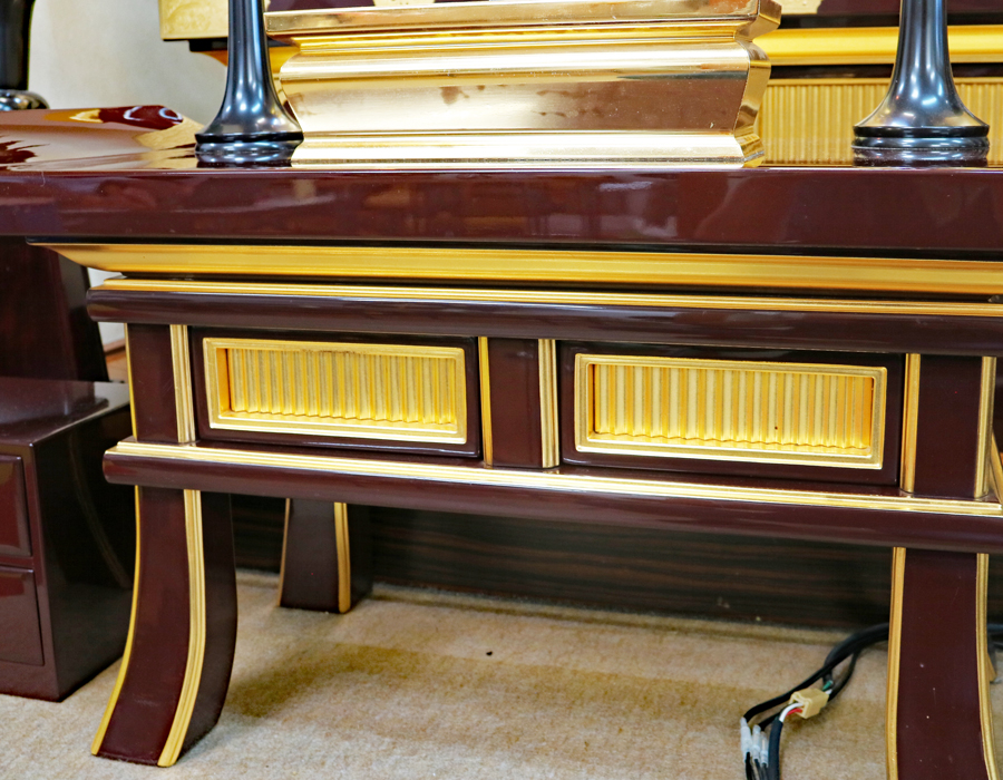 経机には、漆・金箔がふんだんに使用されており、こだわりの経机に仕上がっております。