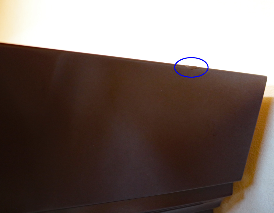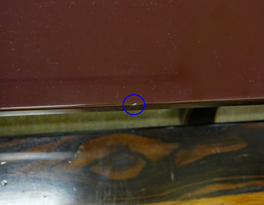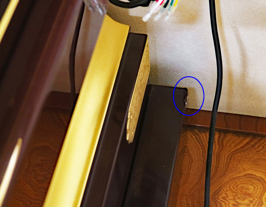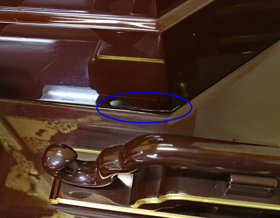 上記お写真の青丸の箇所(お仏壇上台と下台の間)に打ち傷がございます。