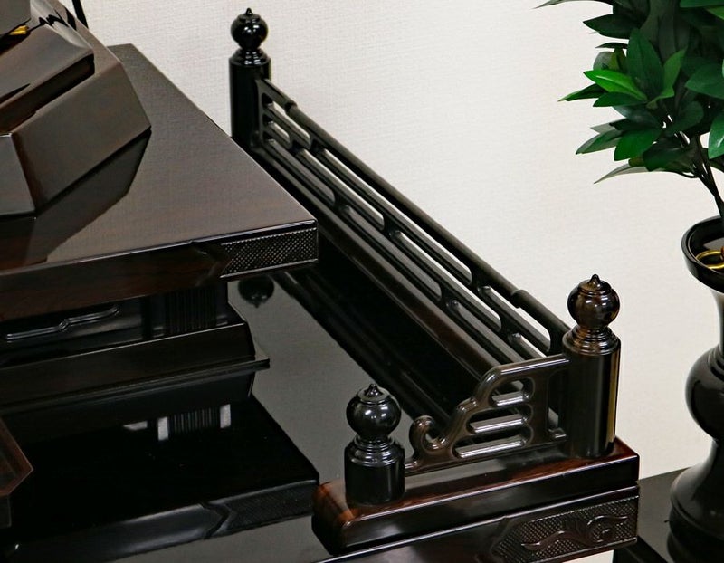 会館のお仏壇のような、欄干が付属しています。 広い会場にぴったりな、貫禄のある欄干です。