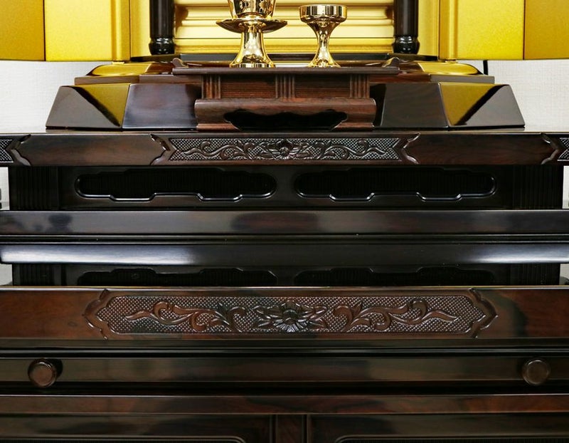 お仏壇真ん中に職人こだわりの彫が施されております。