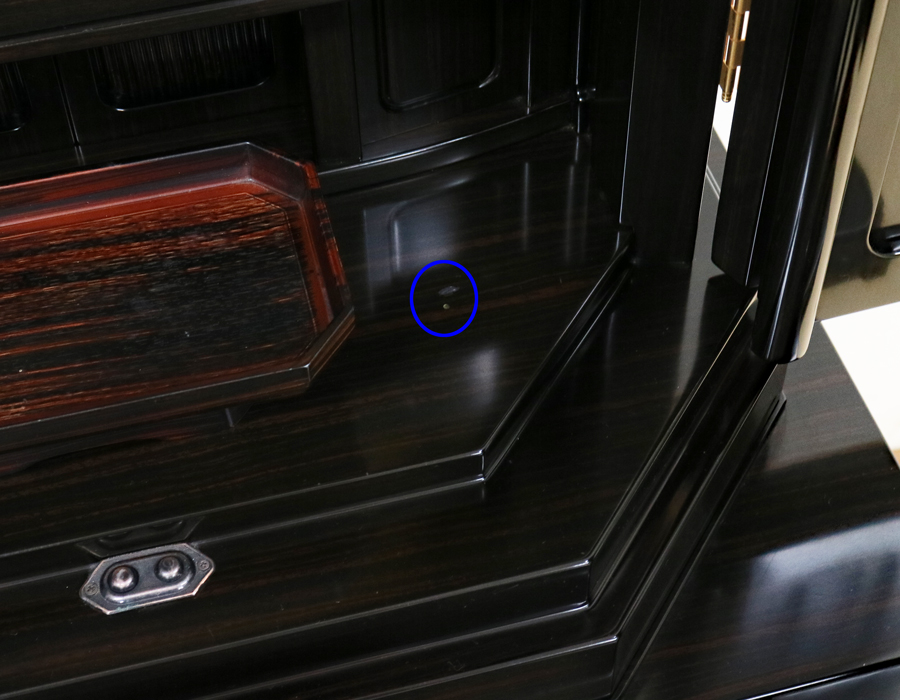 上記お写真の青丸の箇所(三宝置く箇所横)に傷がございます。