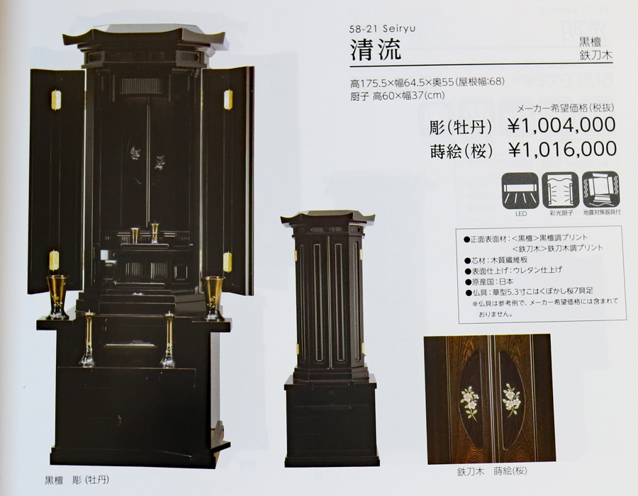 現在もカタログ掲載(販売中)の清流の旧型の中古仏壇となります。