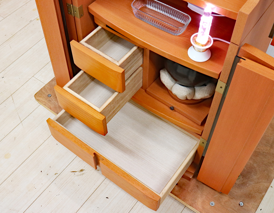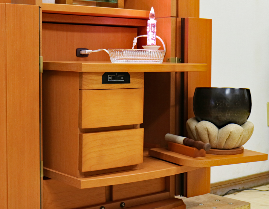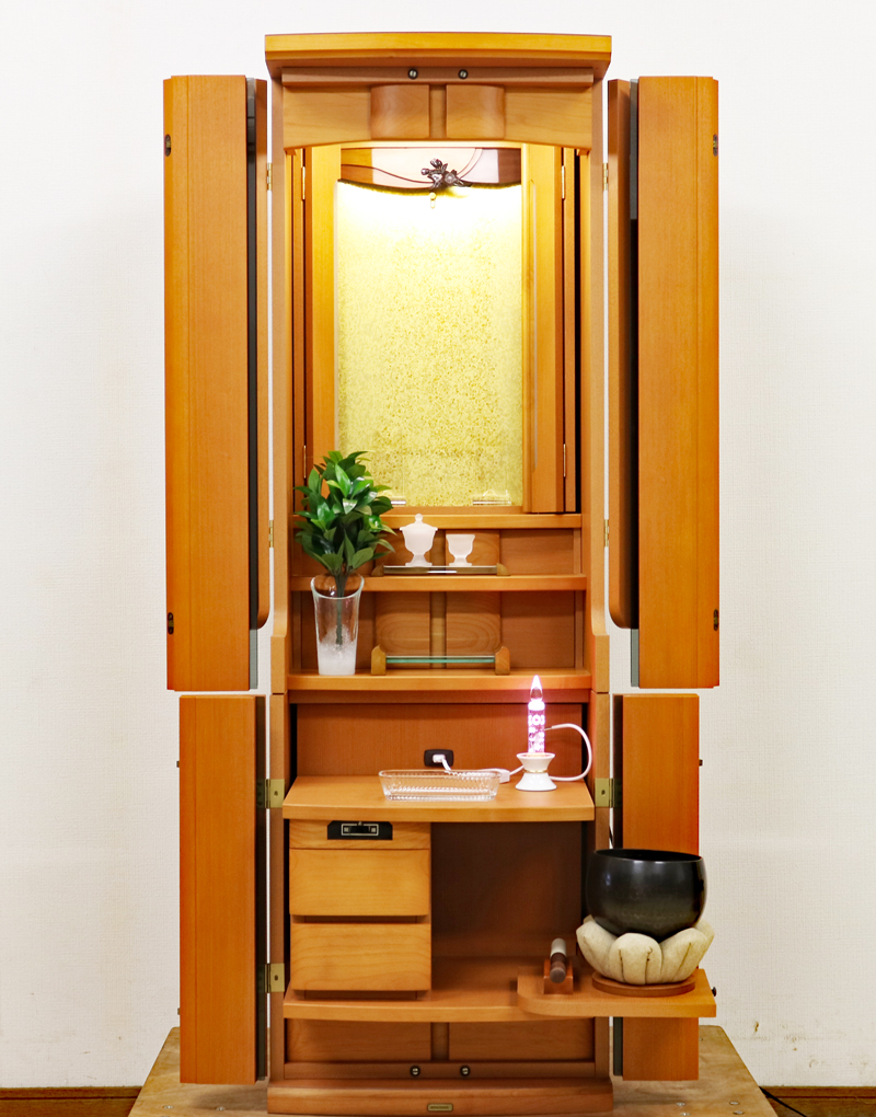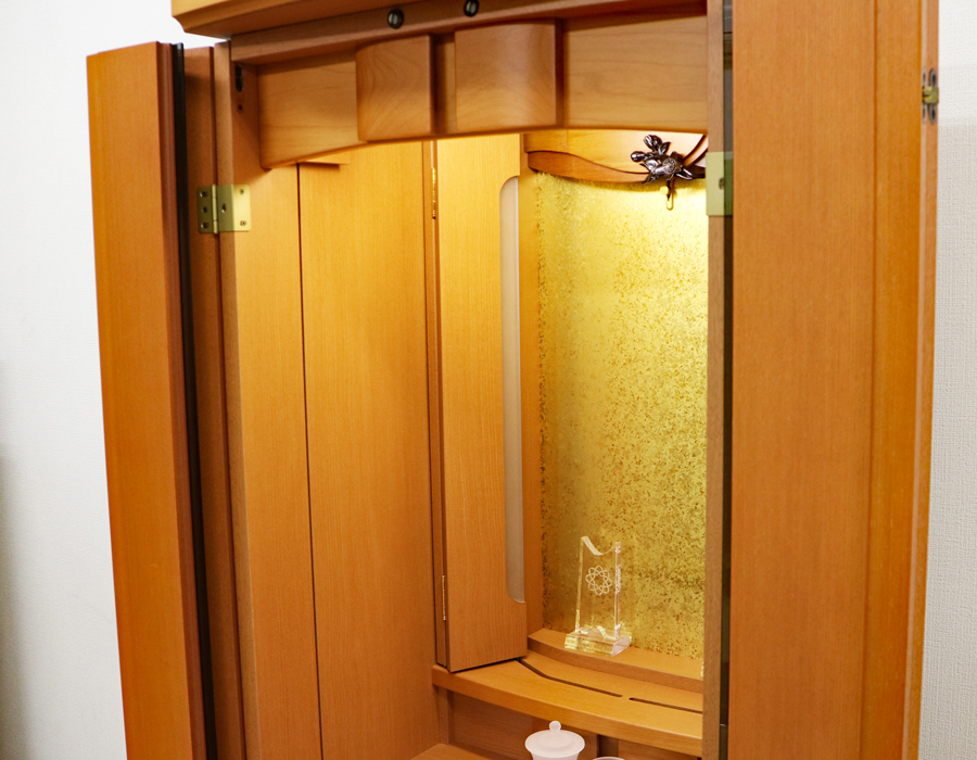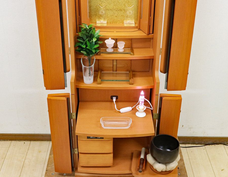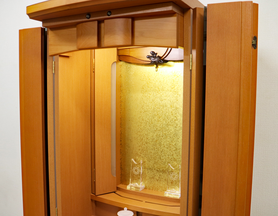 内部には蛍光灯照明も付属していますのでご本尊様を明るく照らしてくれます。