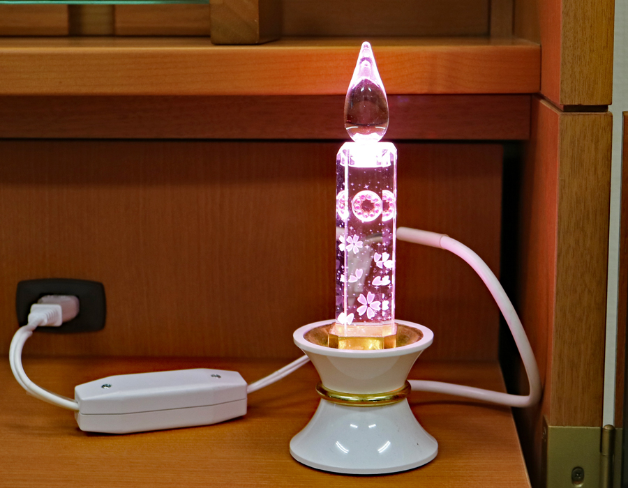 仏具付きをお選びの方は上記お写真のクリスタルキャンドルが付属いたします。