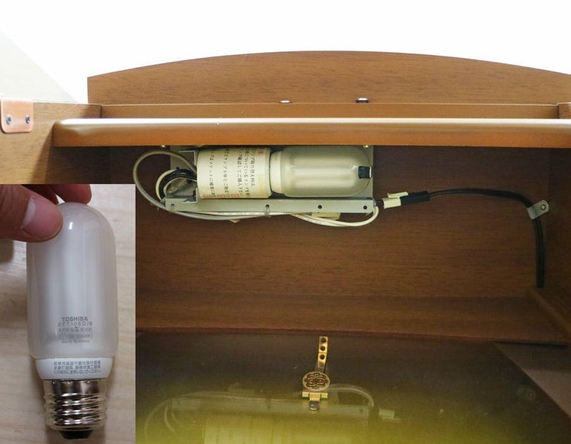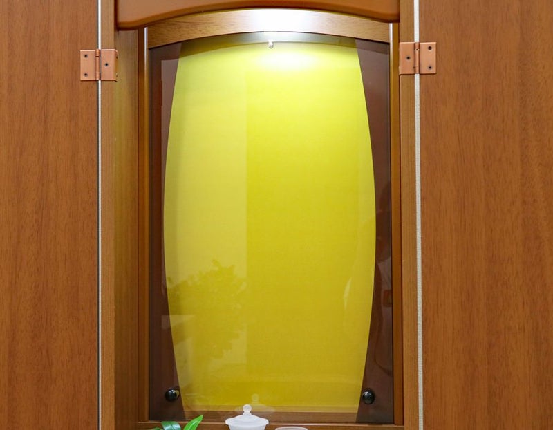 アクリル厨子カバー付き家具調中古仏壇963の登場です。オプション:LEDに交換の場合別途追加になりますが7,500円で交換いたします。(現状東芝のネオボールZ(EFT10ED/8)が装備されております。)