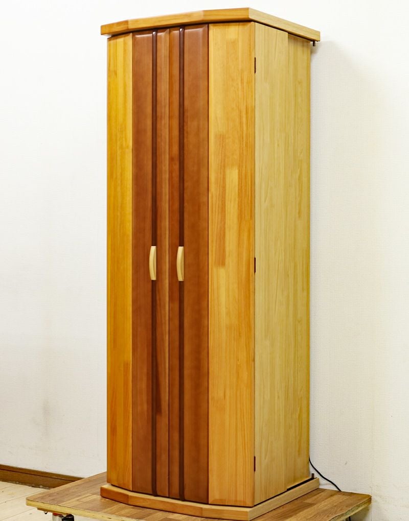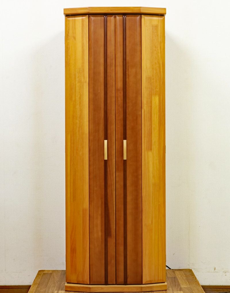 現在金剛堂で仏具付き価格247,530円で販売中の145アンサンブルの中古仏壇です。ダーク色とライト色のツートンのコンビネーション色です。今までのお仏壇のデザインではなかった、オシャレな雰囲気漂うデザインに仕上がっております。押し込み式大戸ですので、押し込むことで斜めからもご本尊様を拝すことができます。