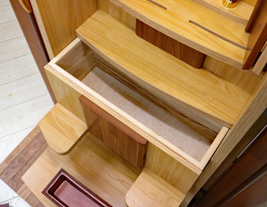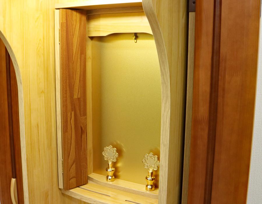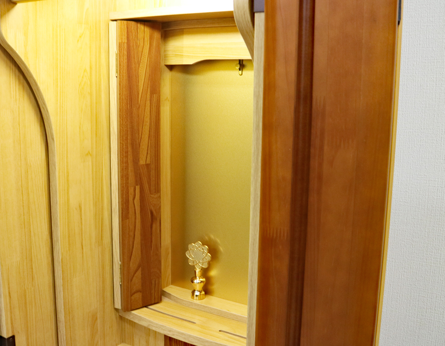 押し込み式大戸ですので、押し込むことで斜めからもご本尊様を拝すことができます。