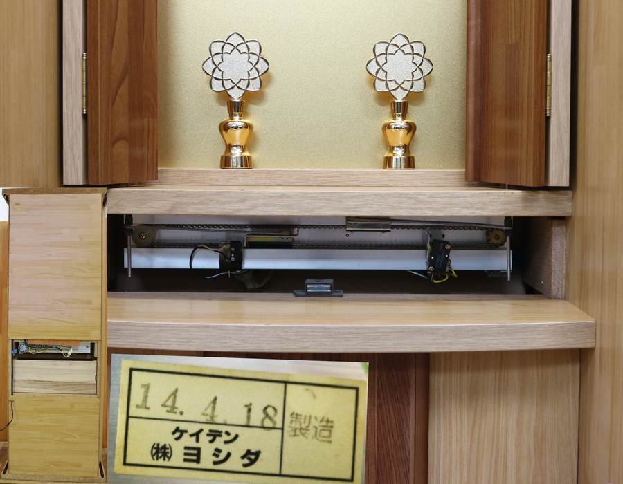 電動開閉機の製造が平成14年4月製造のため、製造から18年ほど前のお仏壇となります。