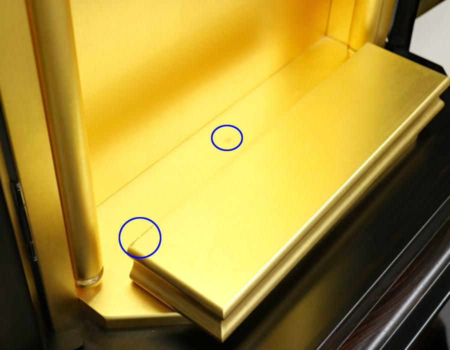 上記お写真の青丸の箇所(蓮台・蓮台下)に小さなはがれがございます。
