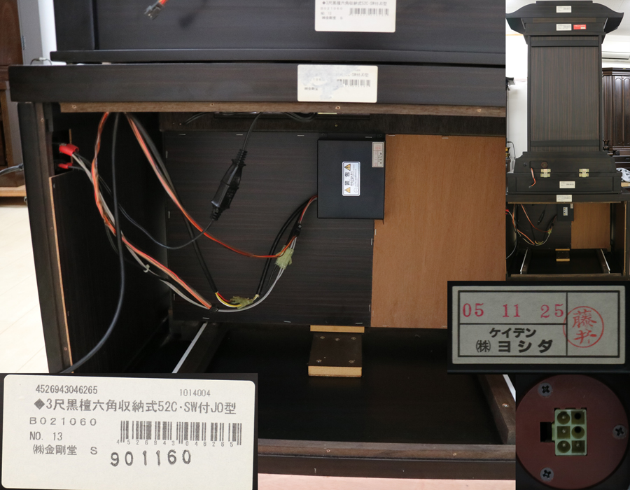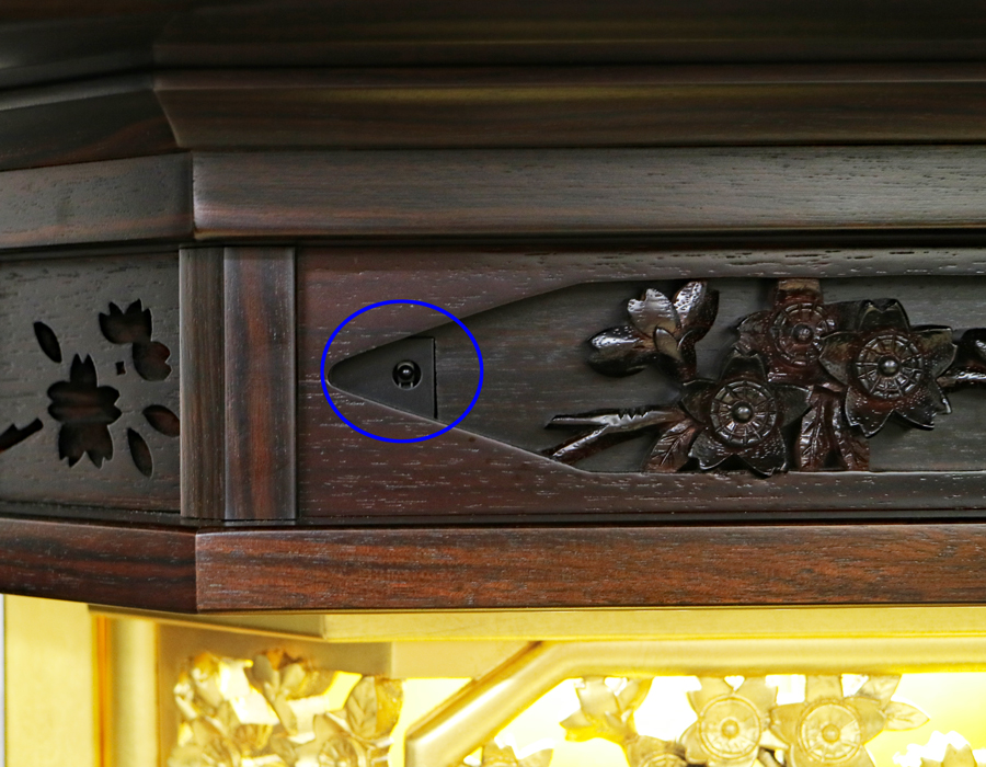 2段階調節をするスイッチはお仏壇の裏側にございます。