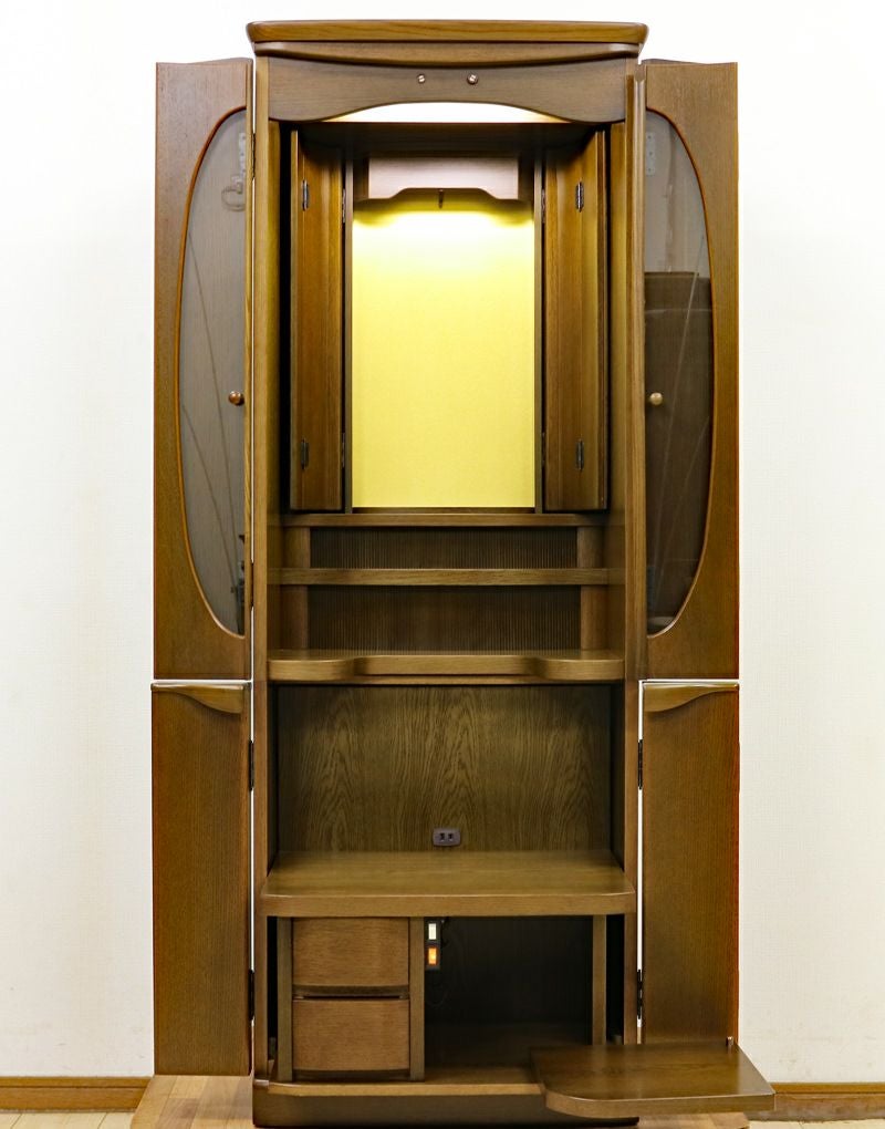 内部には蛍光灯照明も付属していますのでご本尊様を明るく照らしてくれます。