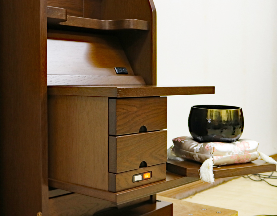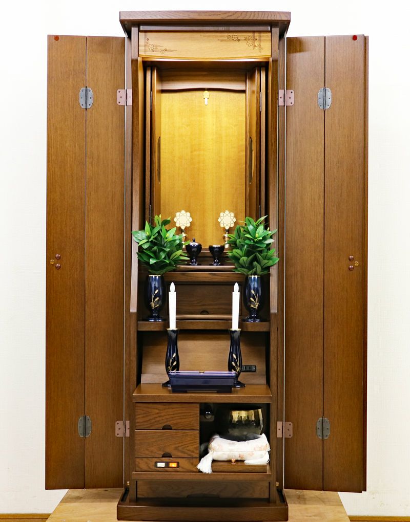 内部には蛍光灯照明も付属していますのでご本尊様を明るく照らしてくれます。