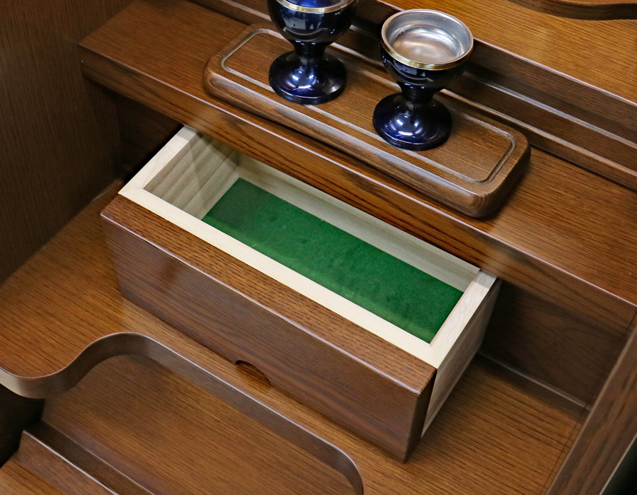 押し込み式大戸ですので、押し込むことで斜めからもご本尊様を拝すことができます。