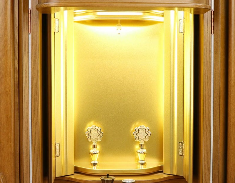 照明は、厨子内上部だけでなく、両脇にも照明がついている彩光厨子を採用しているため、ご本尊様を明るく拝すことができます。