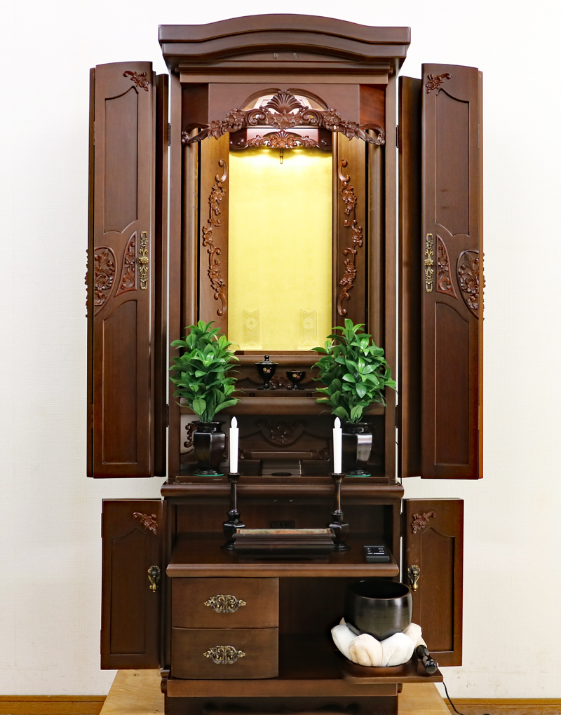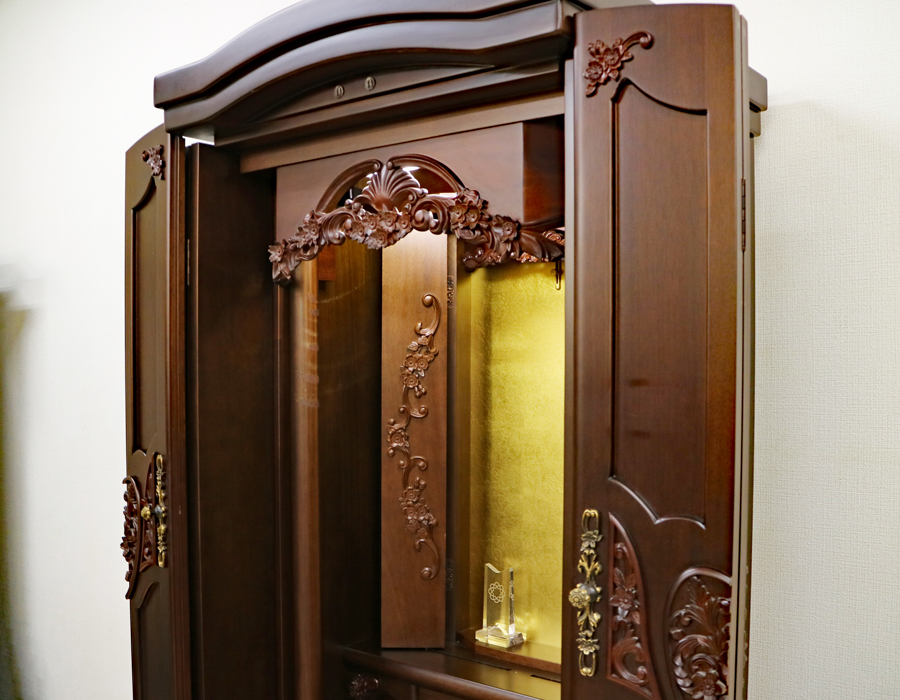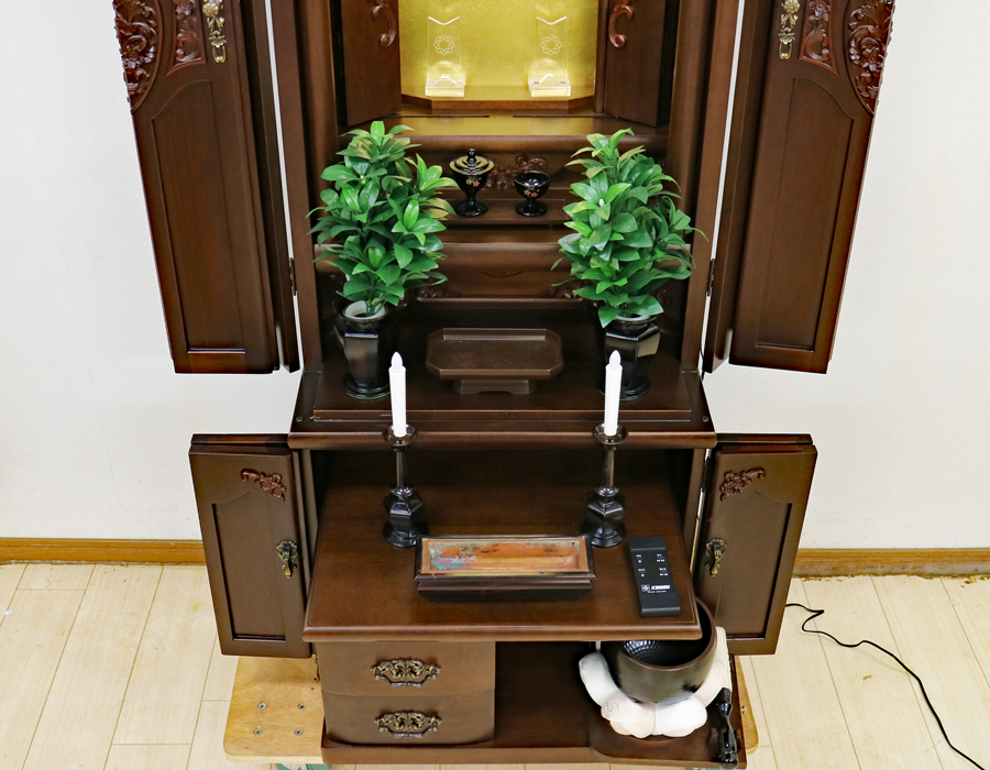内部には蛍光灯照明も付属していますのでご本尊様を明るく照らしてくれます。