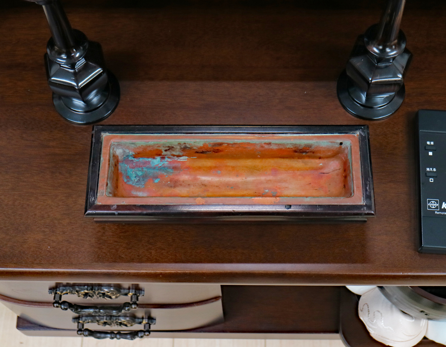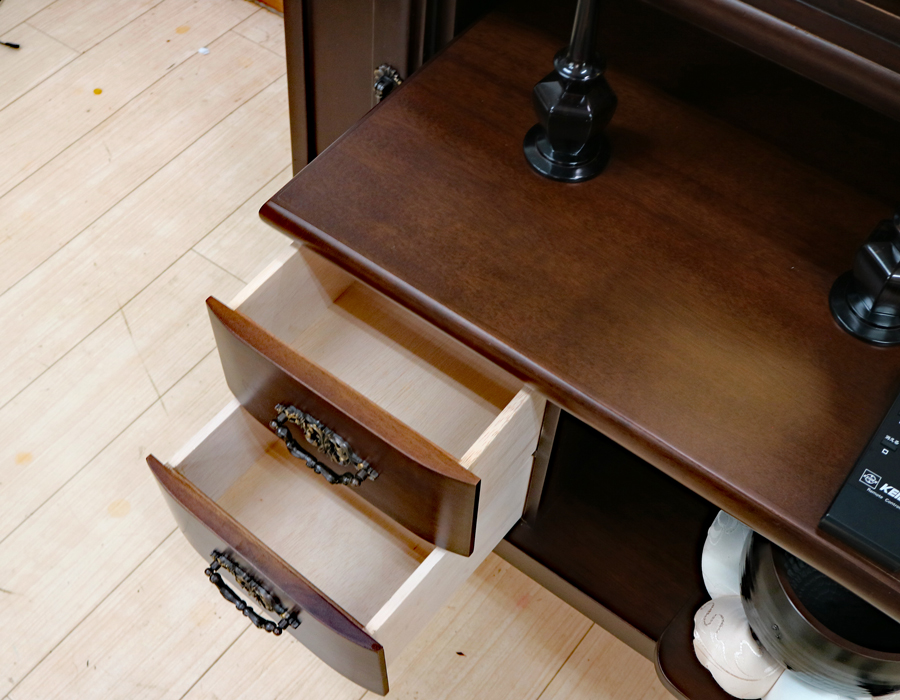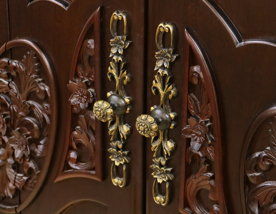 上台の取っ手はアンティーク調のおしゃれな取っ手金具が取り付けられております。