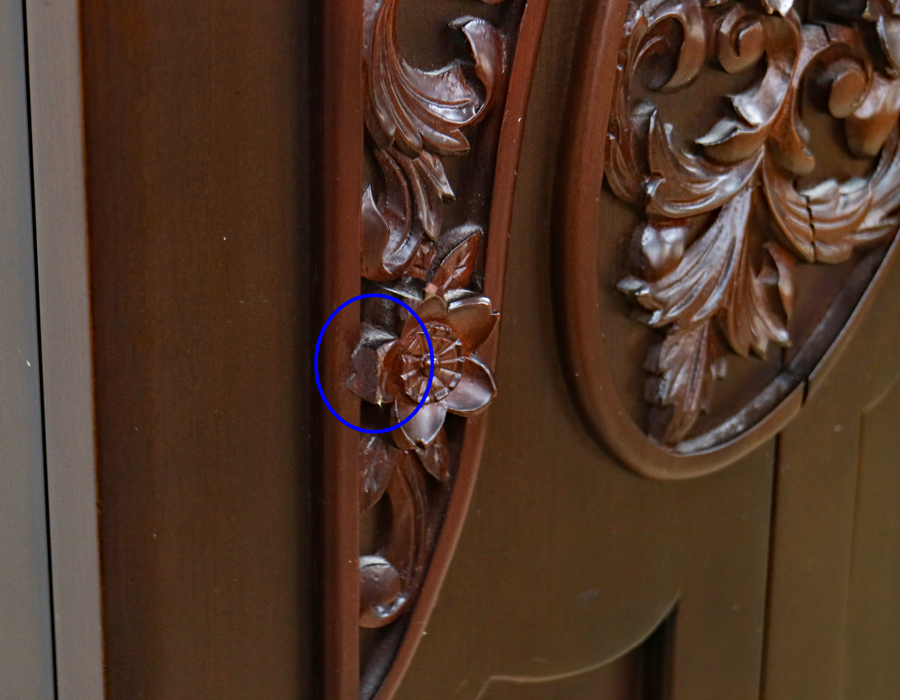 上台大戸に施されている桜の彫に欠けがございましたので、着色いたしました。