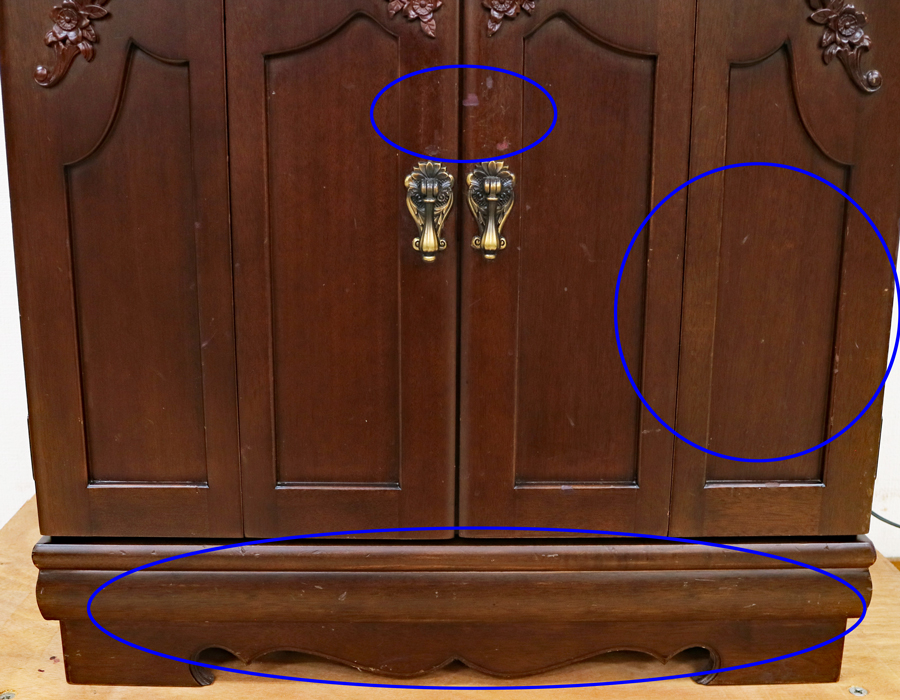 上記お写真の青丸の箇所に傷が見られましたので、着色いたしました。