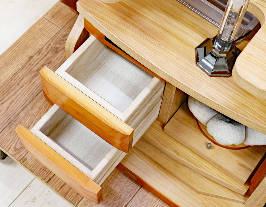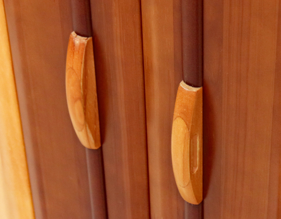 現在金剛堂で仏具付き価格247,530円で販売中の145アンサンブルの中古仏壇です。ダーク色とライト色のツートンのコンビネーション色です。今までのお仏壇のデザインではなかった、オシャレな雰囲気漂うデザインに仕上がっております。押し込み式大戸ですので、押し込むことで斜めからもご本尊様を拝すことができます。