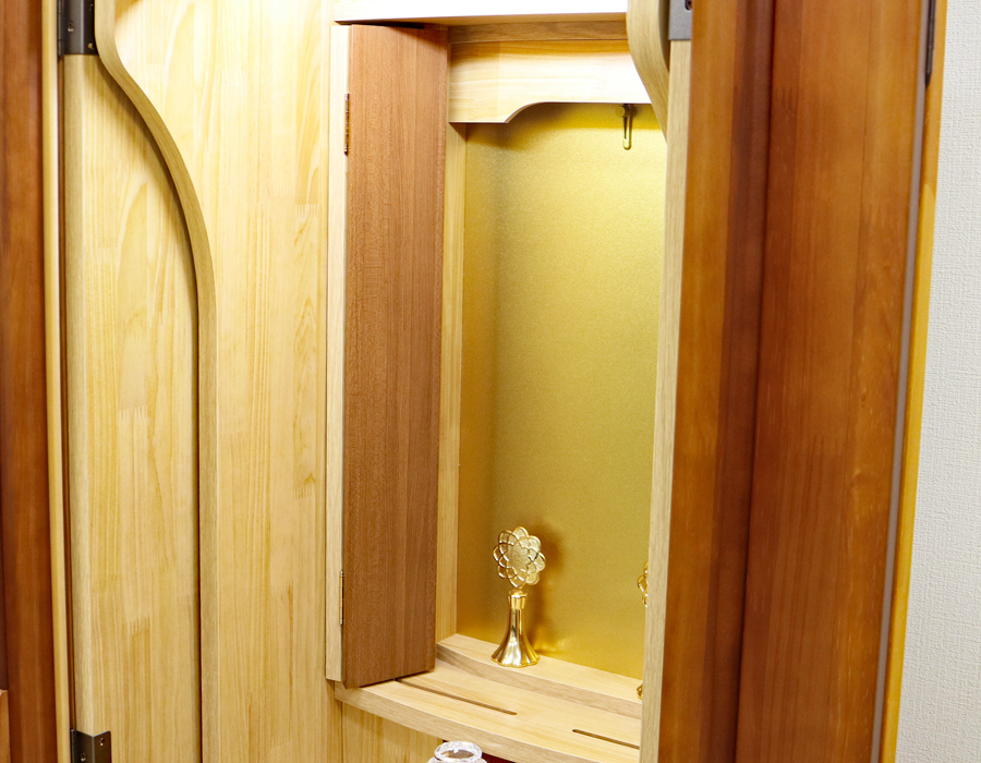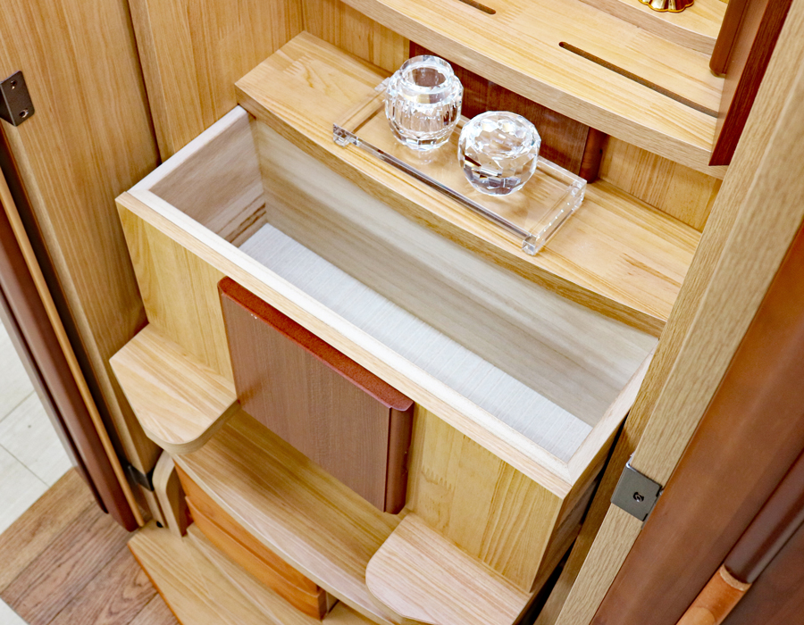 押し込み式大戸ですので、押し込むことで斜めからもご本尊様を拝すことができます。