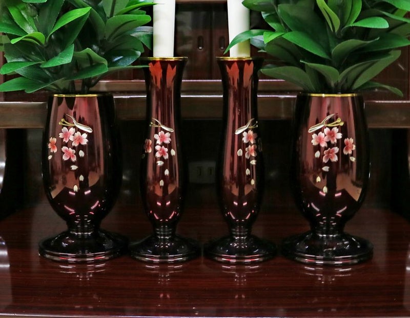 新品仏具:ボヘミア仏器・茶器・造花しきみSS×2・LED電子ローソク小×2・リン布団