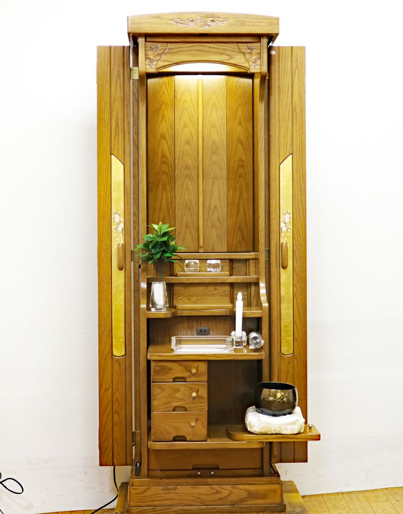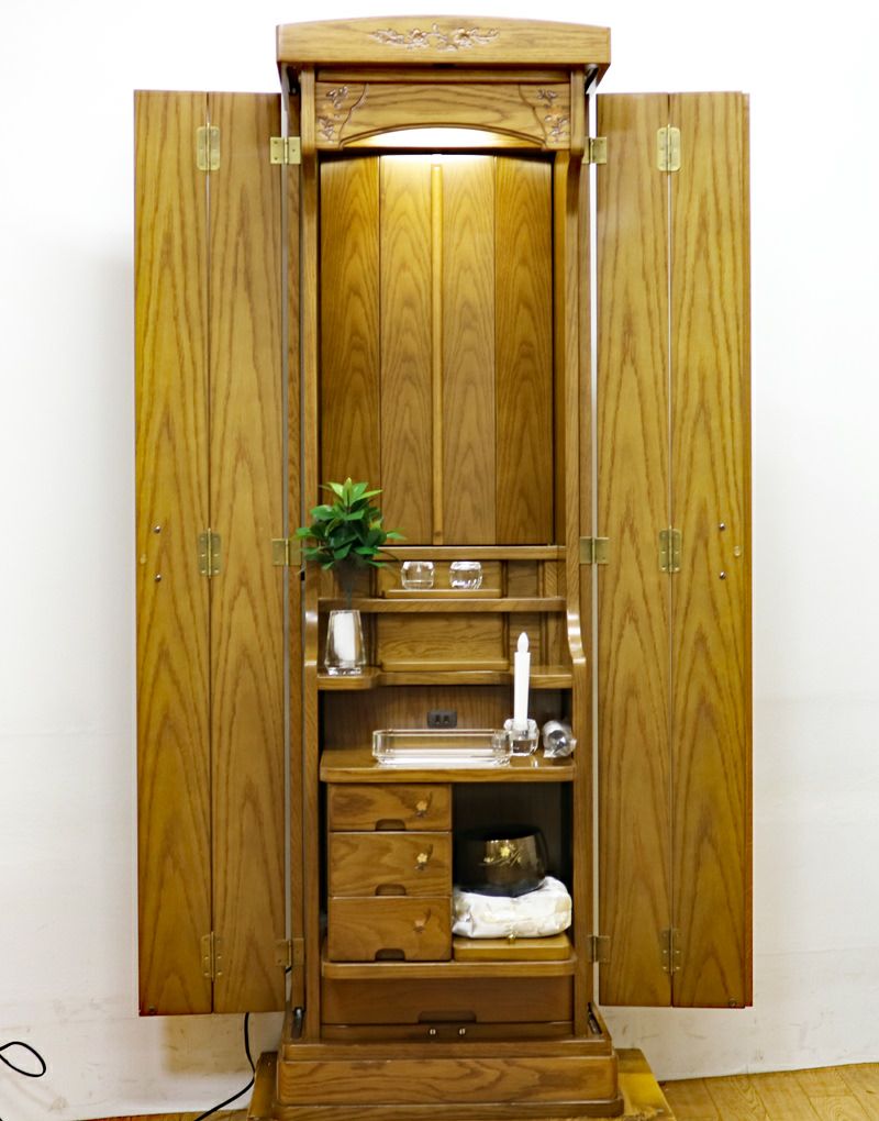 内部には2箇所照明(手前は蛍光灯・奥はLEDテープライト)も付属していますのでご本尊様を明るく照らしてくれます。
