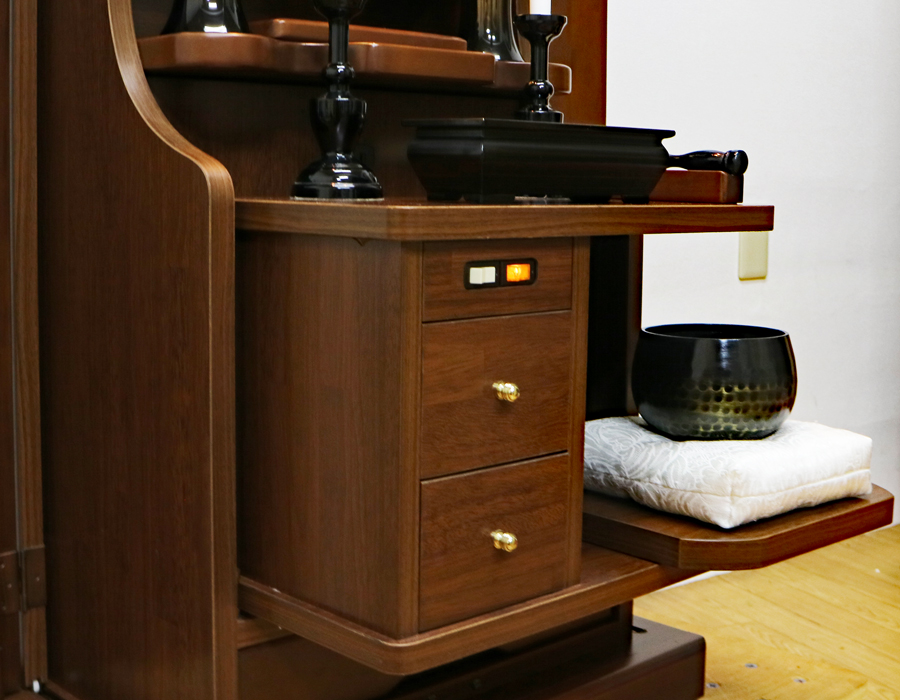 押し込み式大戸ですので、押し込むことで斜めからもご本尊様を拝すことができます。