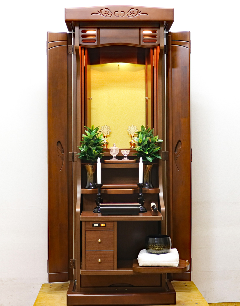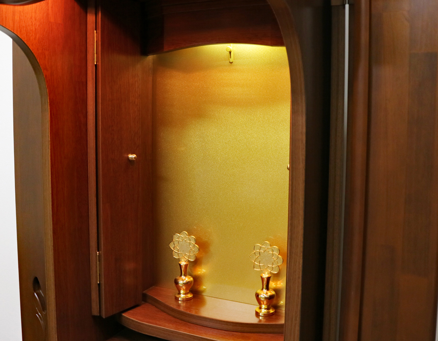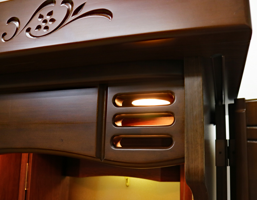 内部には蛍光灯照明も付属していますのでご本尊様を明るく照らしてくれます。
