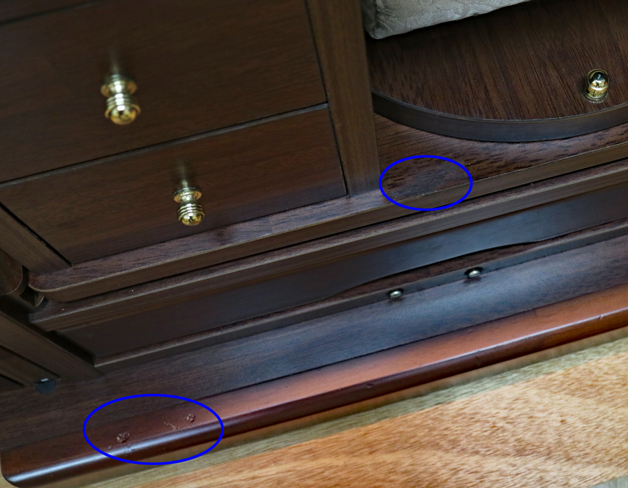 収納リン台の部分が擦れておりましたので、着色いたしました。