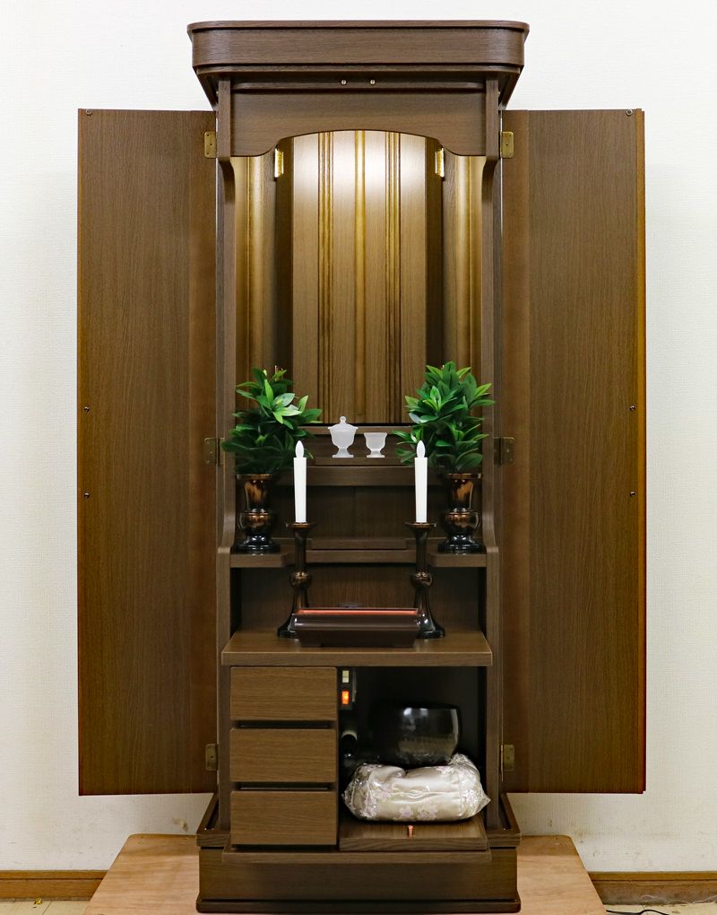 押し込み式大戸ですので、押し込むことで斜めからもご本尊様を拝すことができます。