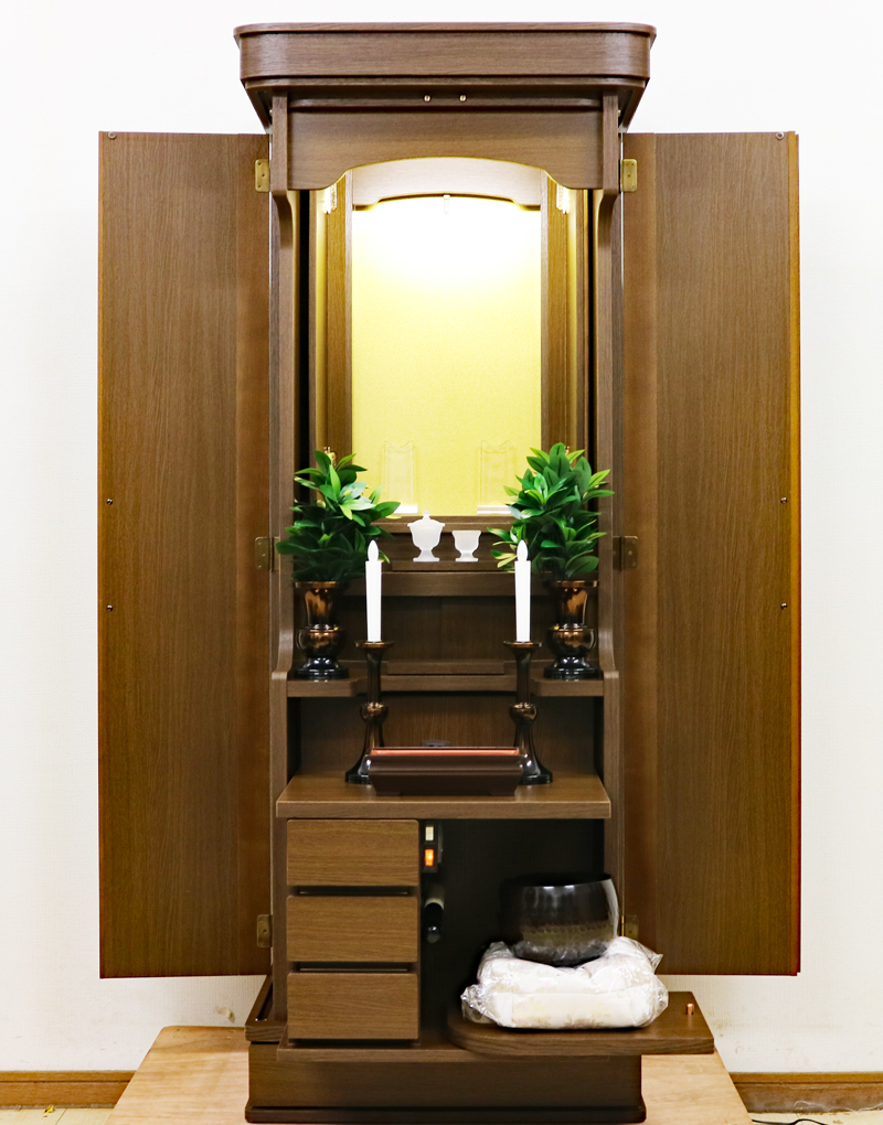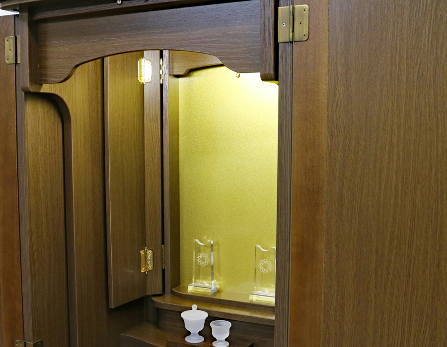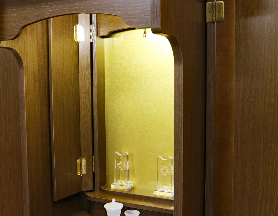 内部には蛍光灯照明も付属していますのでご本尊様を明るく照らしてくれます。
