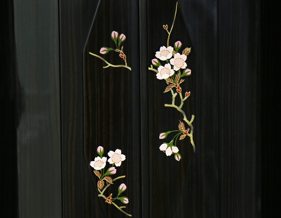 厨子扉にかわいらしい桜蒔絵が施されております。