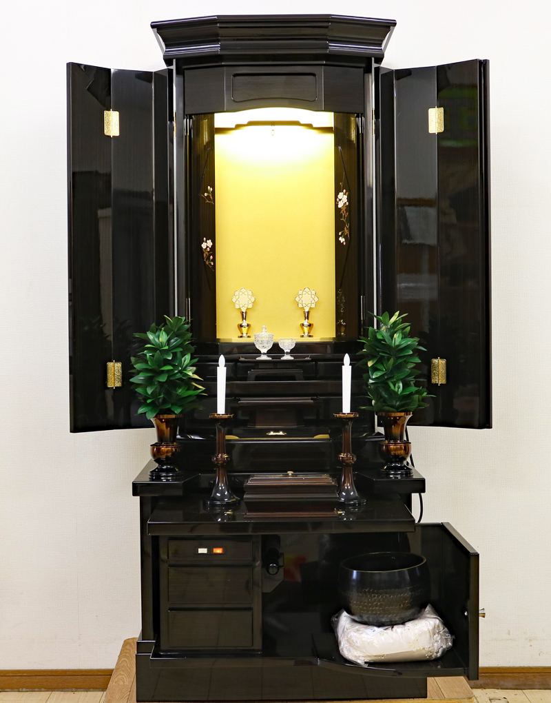 内部には蛍光灯照明も付属していますのでご本尊様を明るく照らしてくれます。