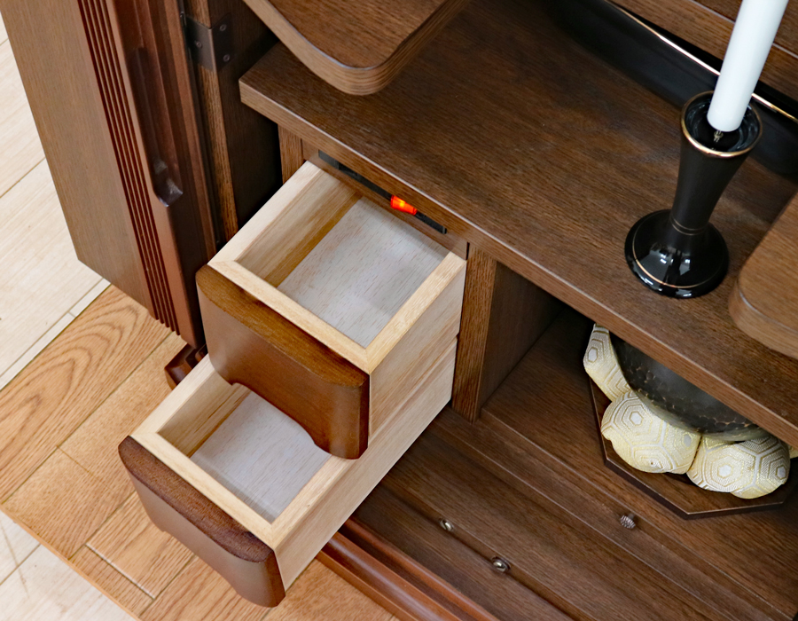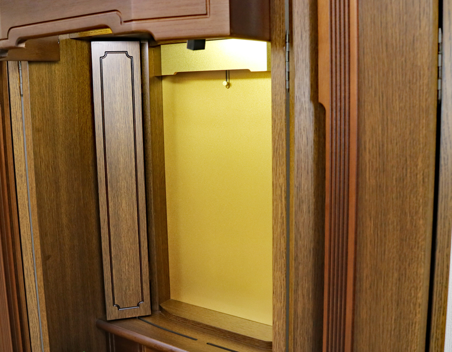 内部には蛍光灯照明も付属していますのでご本尊様を明るく照らしてくれます。