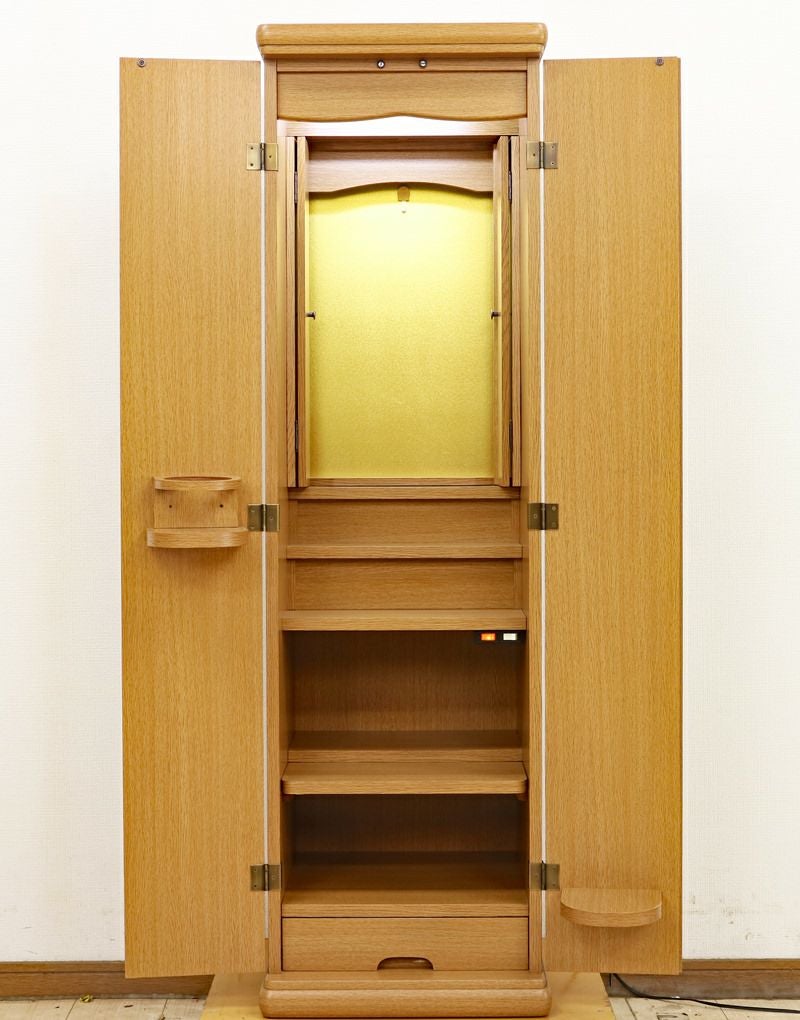 こちらのお仏壇は、コンパクト家具調中古仏壇1009です。LED照明・ご本尊様を御安置するための吊り金具を当店にて新品に交換いたしました。お手頃価格ですので、ワンルームや就職・大学進学・お一人暮らしにも最適です。