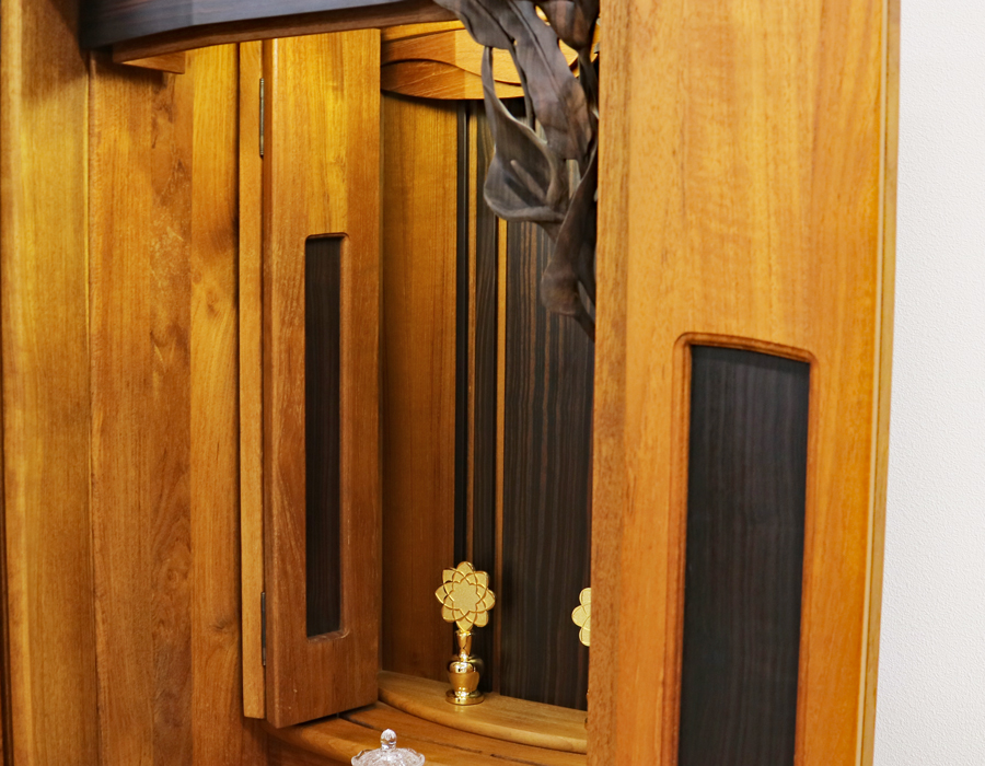 三方開き式の大戸ですので、三方開きすることで斜めからもご本尊様を拝すことができます。