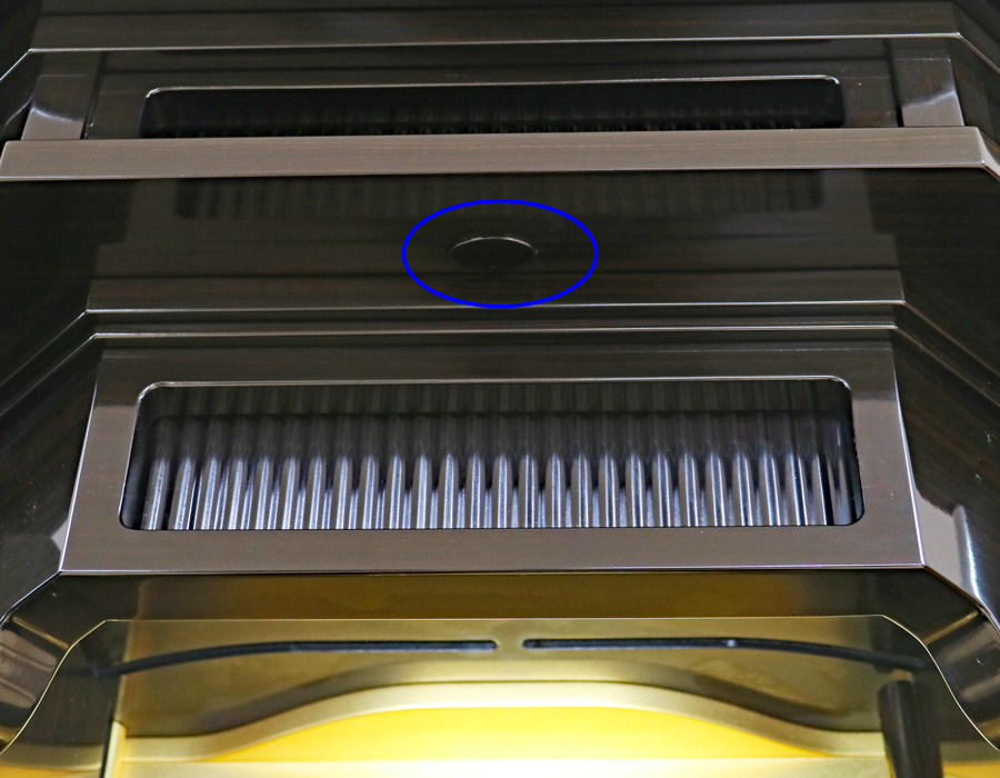 上記お写真の青丸の箇所受信機センサーがございますのでこちらに向かってリモコンを使用してください。