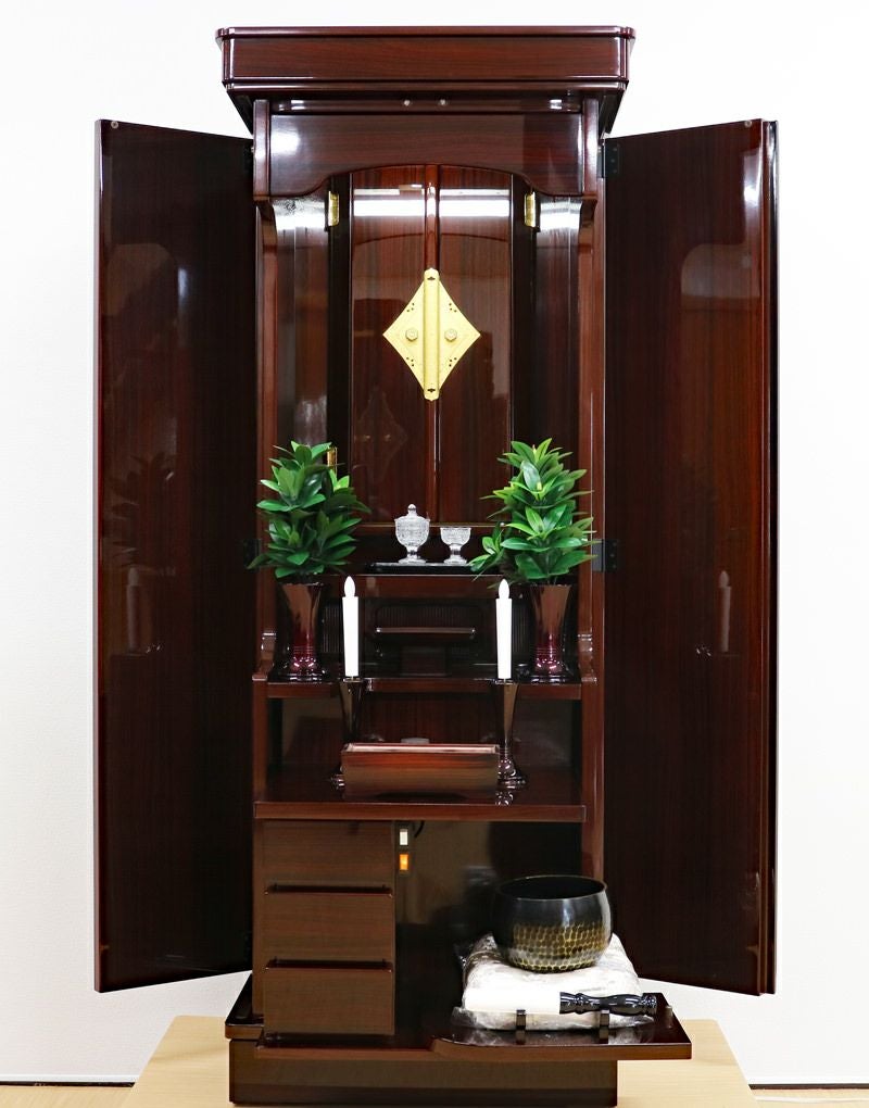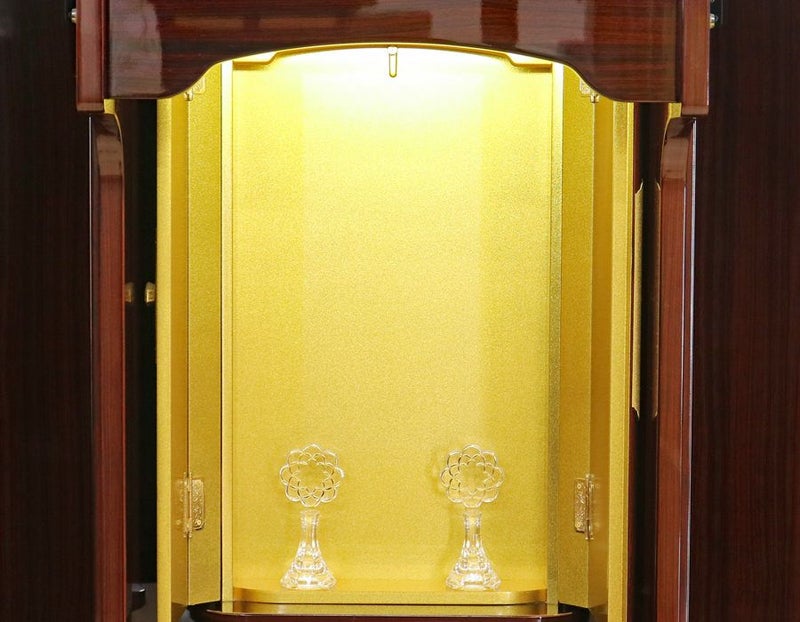 内部には蛍光灯照明が設置されておりますのでご本尊様を明るく照らしてくれます。