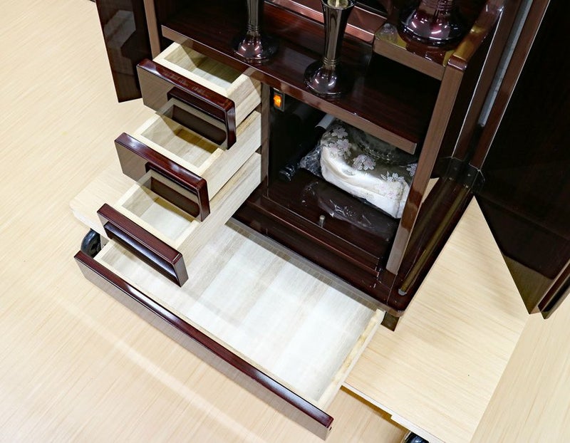 押し込み式大戸ですので、押し込むことで斜めからもご本尊様を拝すことができます。