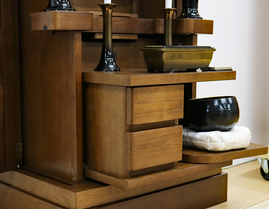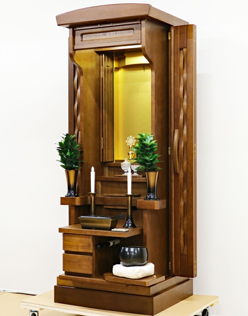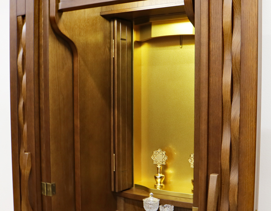押し込み式大戸ですので、押し込むことで斜めからもご本尊様を拝すことができます。