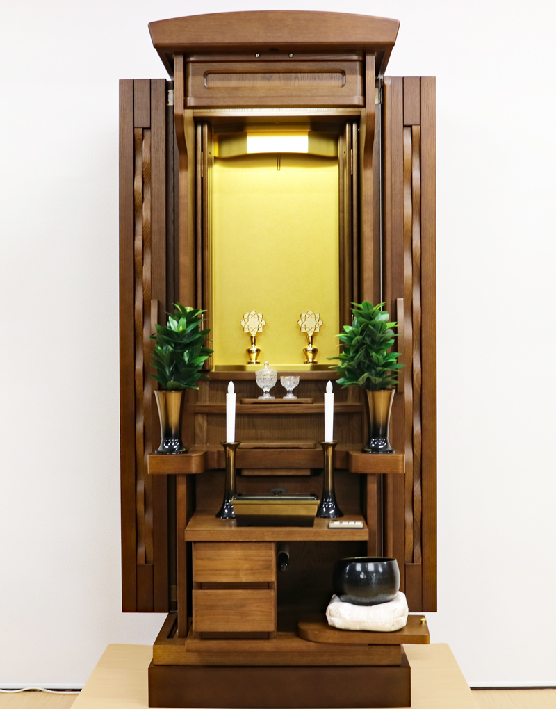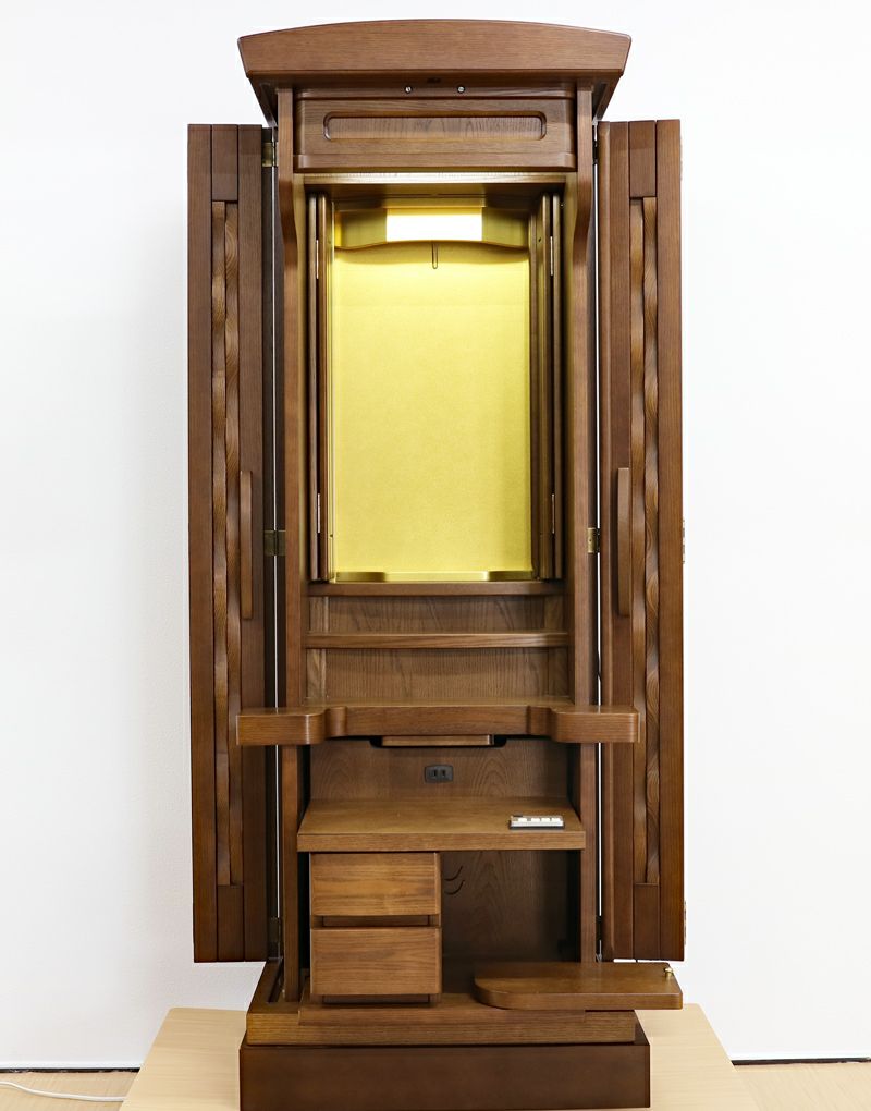 内部には蛍光灯10w照明が設置されておりますのでご本尊様を明るく照らしてくれます。