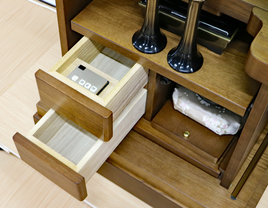 終了時にはリン台を元に戻して、机部分も中に押し込む感じで収納します。