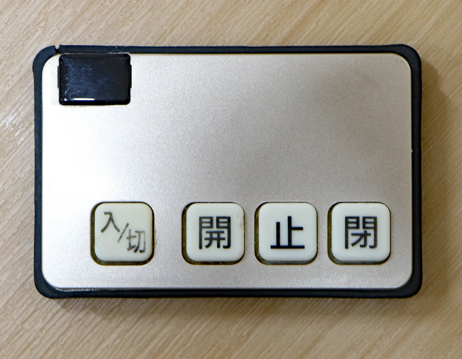 上記お写真のリモコンで電源の入り切り、電動厨子扉の開閉を行います。