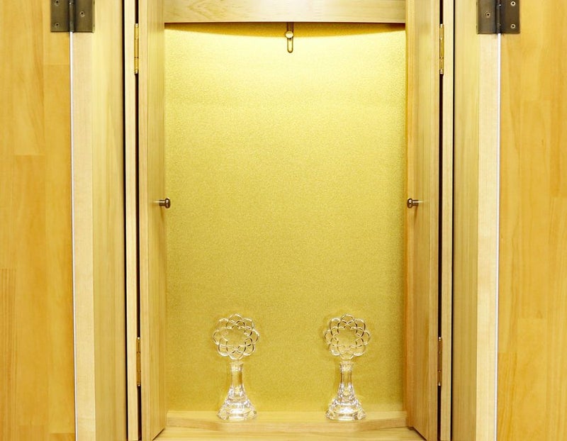 内部には蛍光灯照明も付属していますのでご本尊様を明るく照らしてくれます。