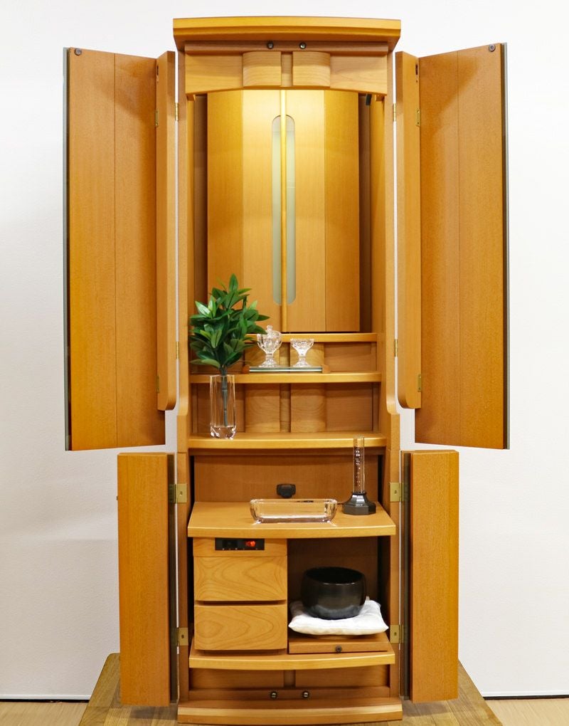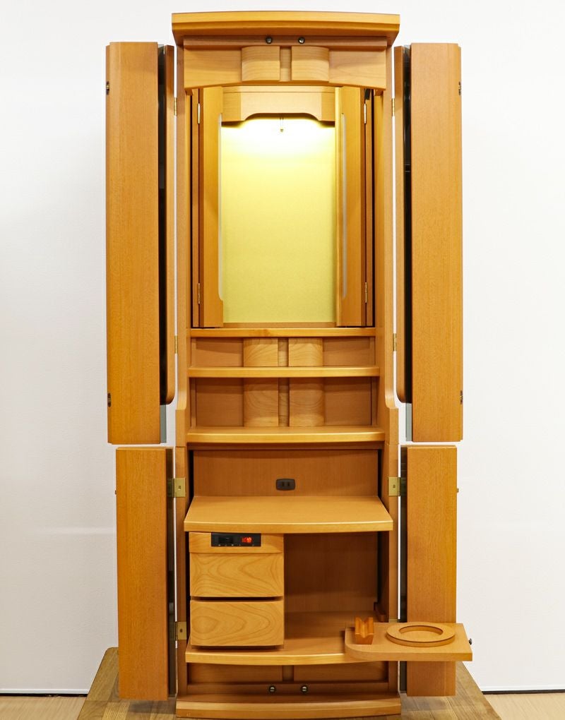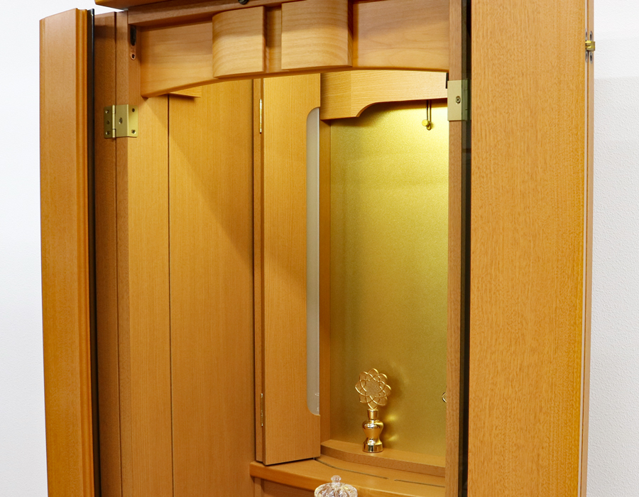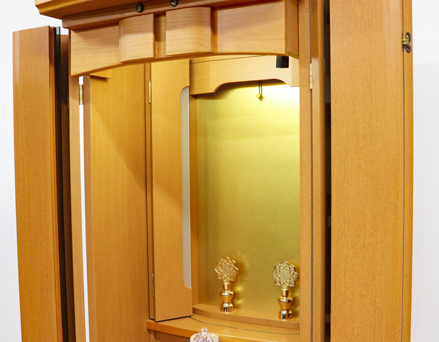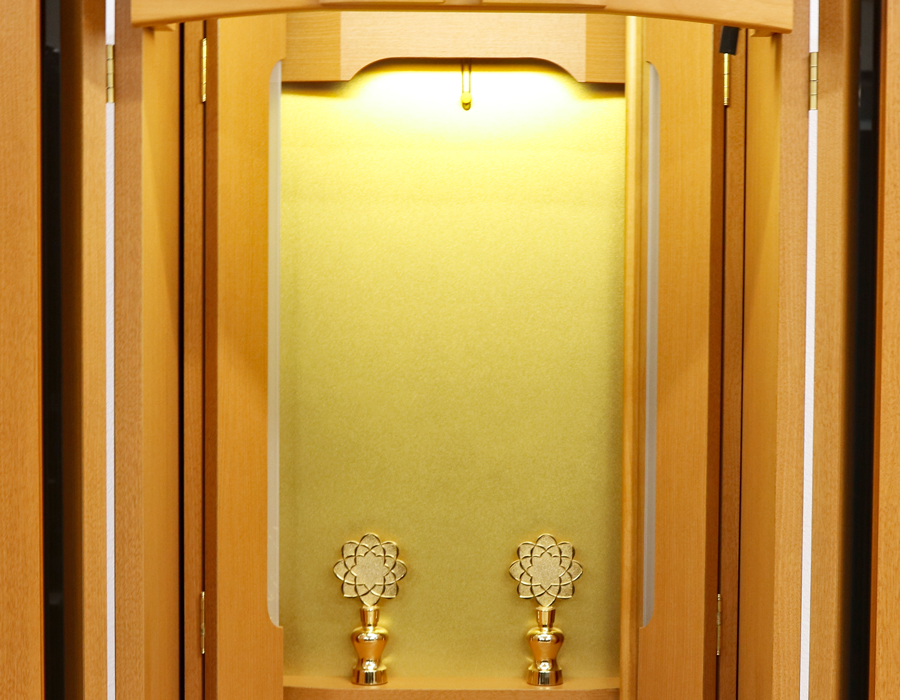 内部には蛍光灯照明も付属していますのでご本尊様を明るく照らしてくれます。