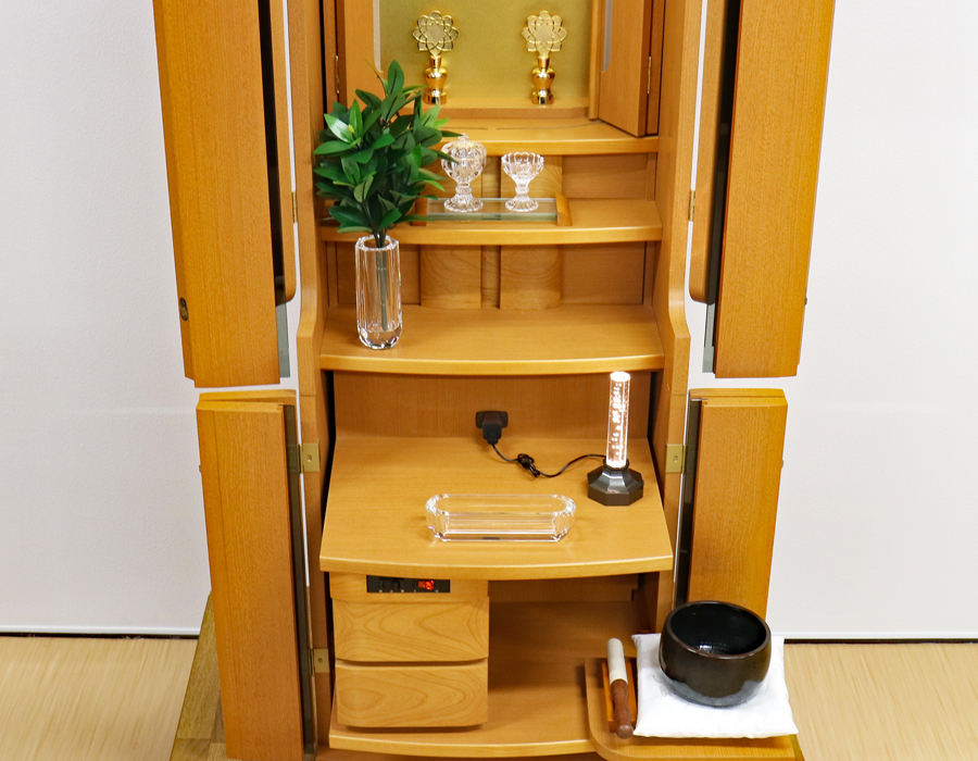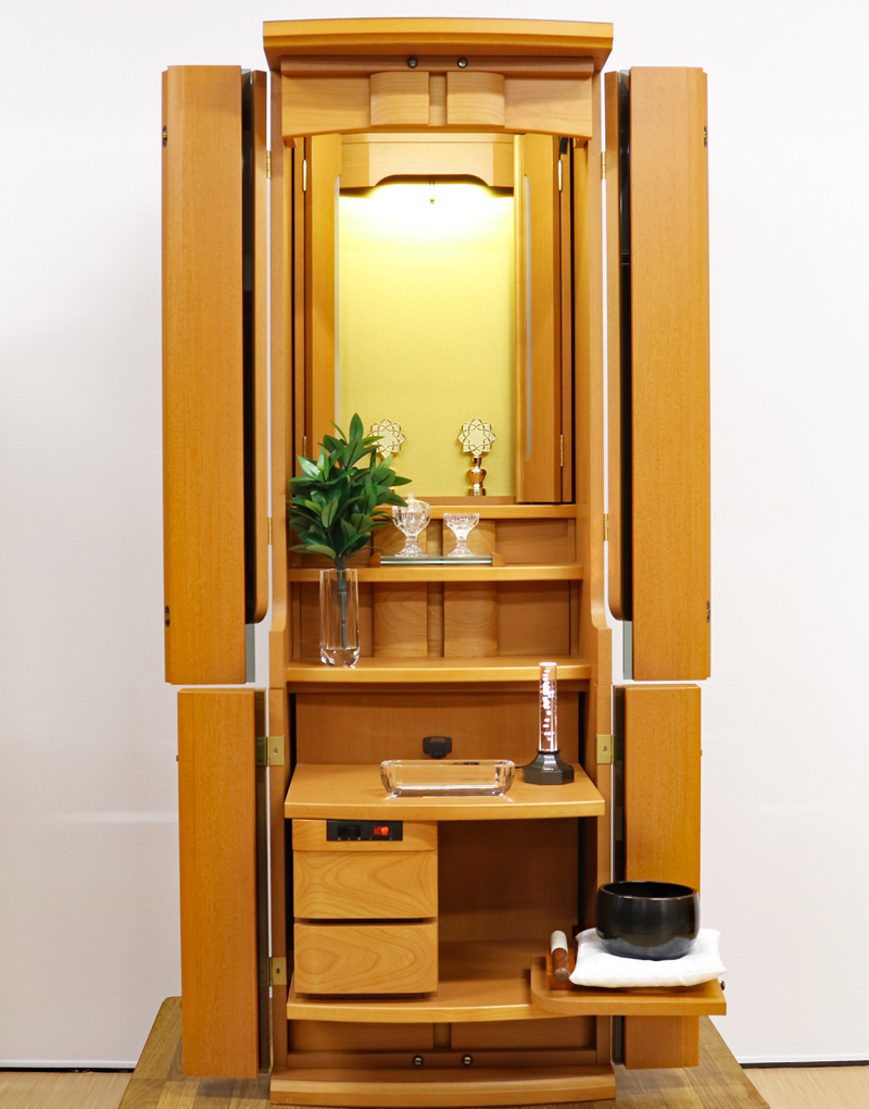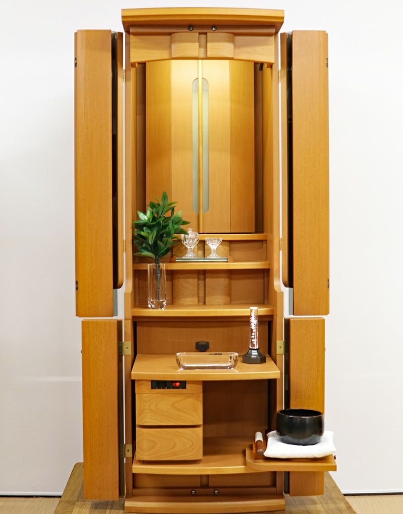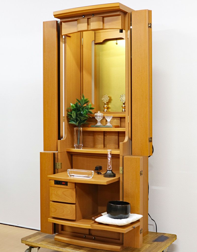 内部には蛍光灯照明も付属していますのでご本尊様を明るく照らしてくれます。