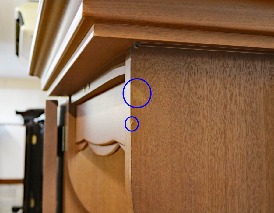 上記お写真の青丸の箇所に、シート剥がれがございましたので、着色いたしました。