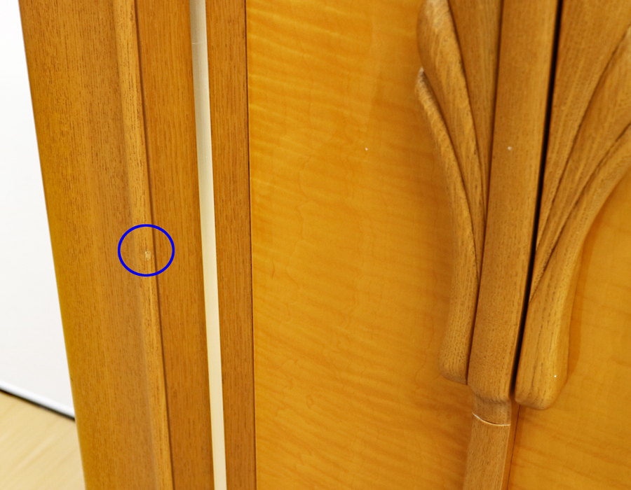 上記お写真の青丸の箇所に小さな打ち傷がございます。
