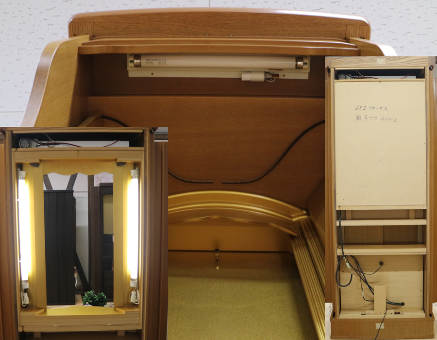 ※厨子内の両脇の照明は、裏板を外さないと蛍光灯の交換が難しいです。照明は全て新品に交換済みです。