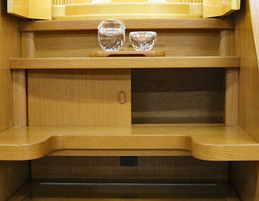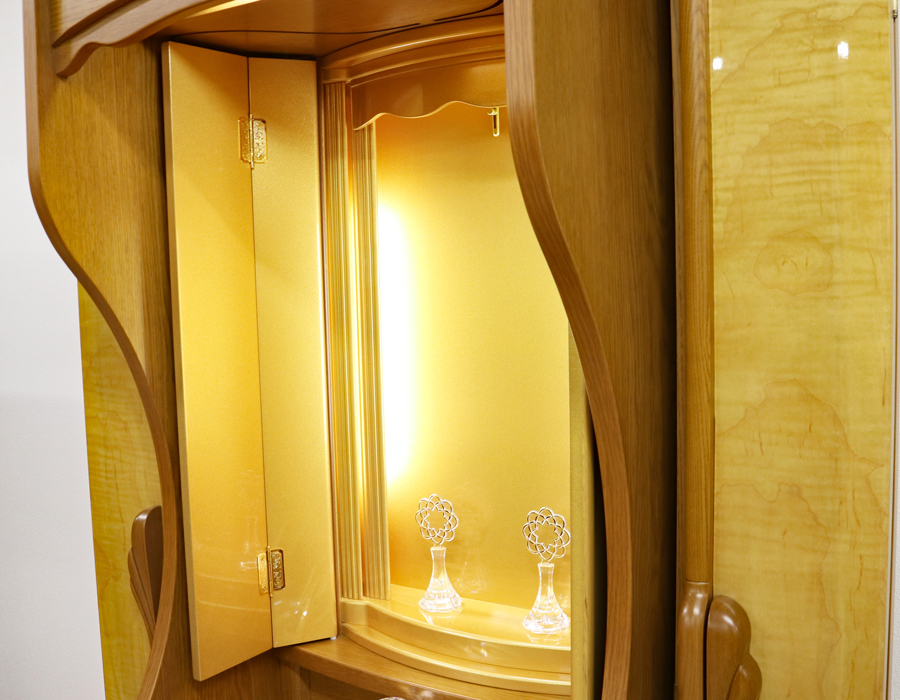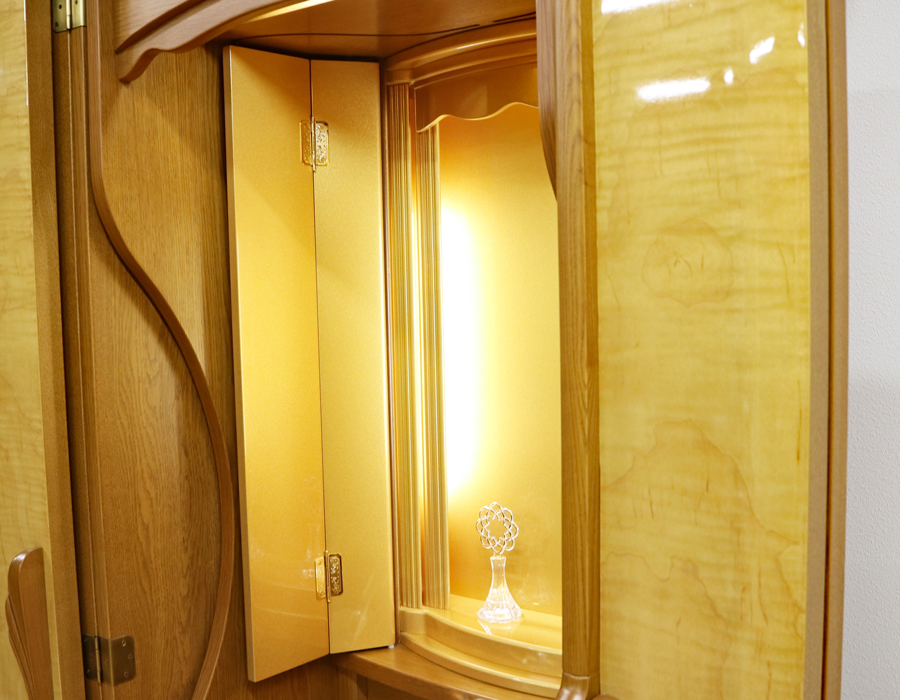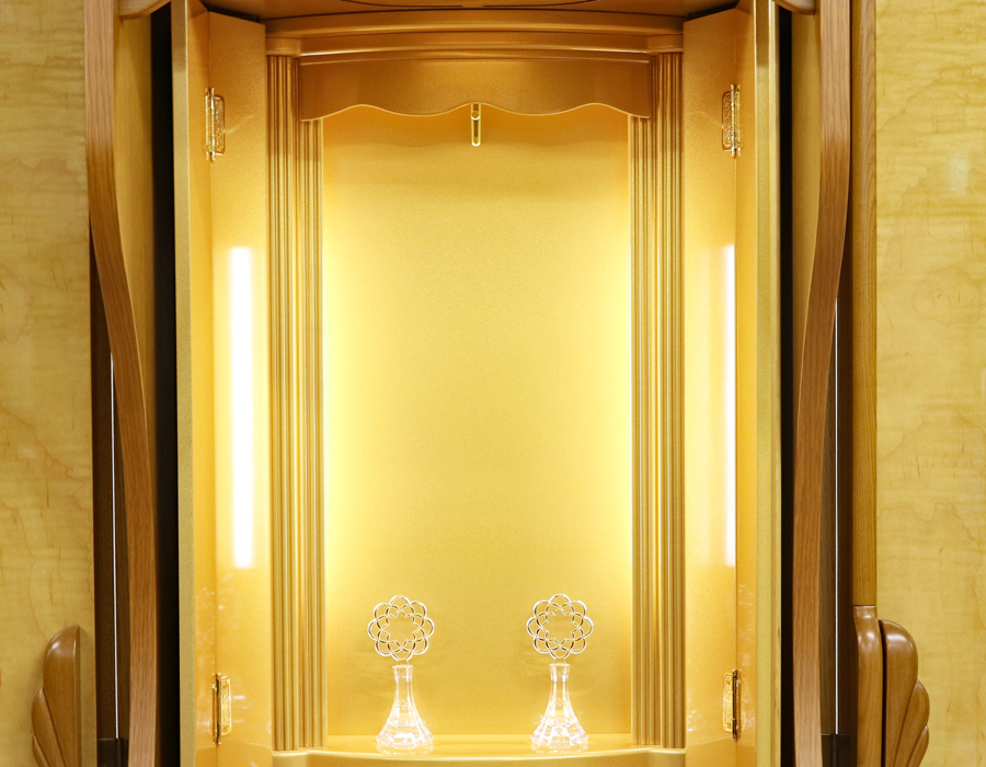 お厨子内の上部だけでなく、両脇にもLED照明が設置されている、彩光厨子を採用しておりますので、ご本尊様を明るく拝すことが出来ます。